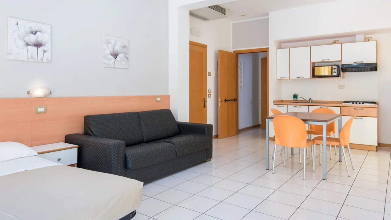 Negli appartamenti da 3 e 4 posti potrebbero essere disponibili letti aggiuntivi stesi, a castello o con divano letto matrimoniale.
